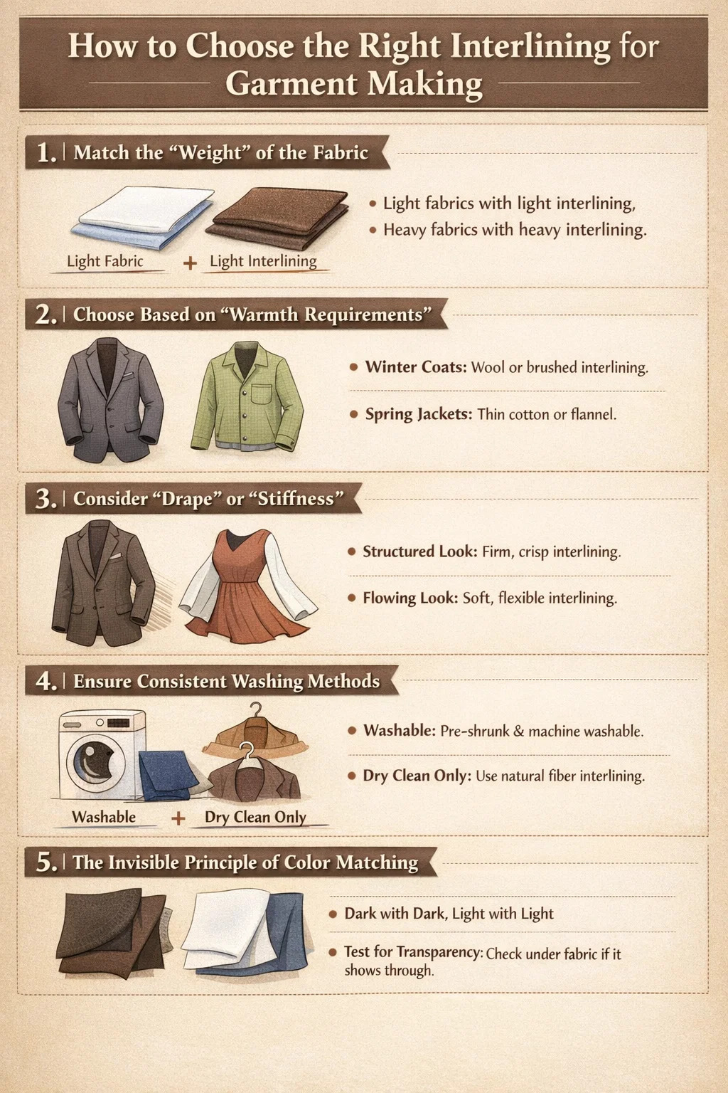 Yapılı bir görünüm için: Bir takım elbisenin göğüs kısmının düz ve yakasının canlı olmasını istiyorsanız, sıkı dokunmuş, az esneyen bir tela seçin.