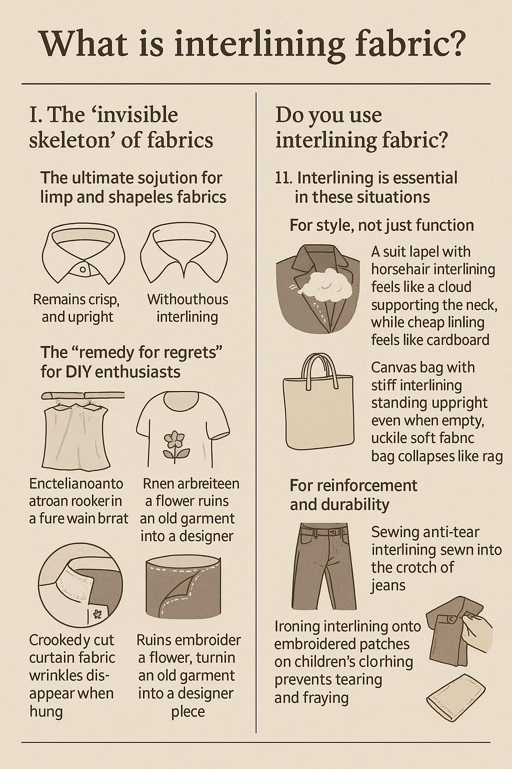 Ekleing interlining to a chiffon dress makes it feel like umbrella fabric, preventing it from flowing in the wind.